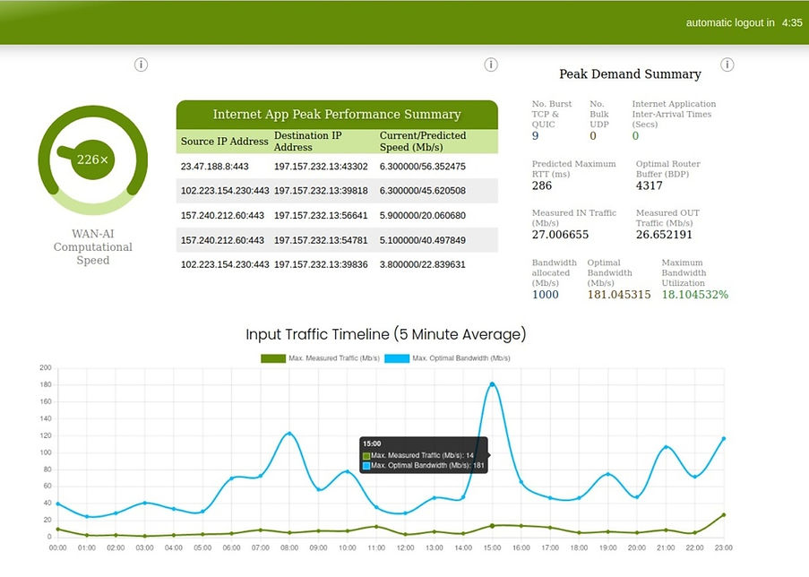 When combined with Machine Learning/AI, WAN-AI's network-level technology generates Network State Information (NSI) in real-time, e.g., available bandwidth, utilization etc which enables network and traffic management on Internet timescales and transaction volumes.